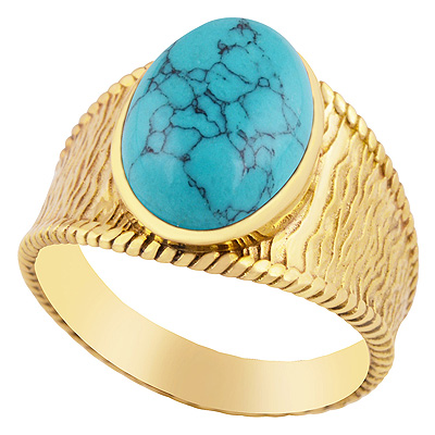 Beautiful Wave Pattern Around Turquoise Oval Shape Solid Brass Men's Ring