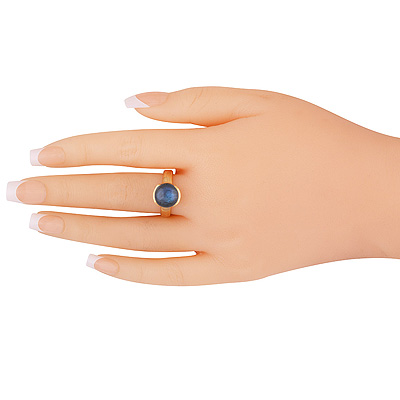 Alluring Jali Pattern Around Blue Chalcedony Round Shape Solid Brass Men's Ring