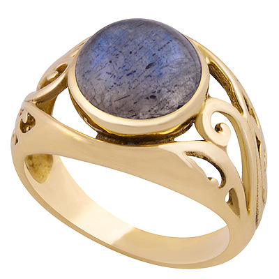 Alluring Jali Pattern Around Labradorite Round Shape Solid Brass Men's Ring