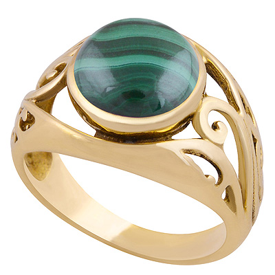 Alluring Jali Pattern Around Malachite Round Shape Solid Brass Men's Ring