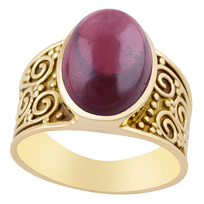 Alluring Rawa Spiral Design Around Garnet Oval Shape Solid Brass Men's Ring