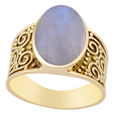 Home | Fashion Rings | Brass Men's Rings | Alluring Rawa Spiral Design Around Rainbow Moonstone Oval Shape Solid Brass Men's Ring