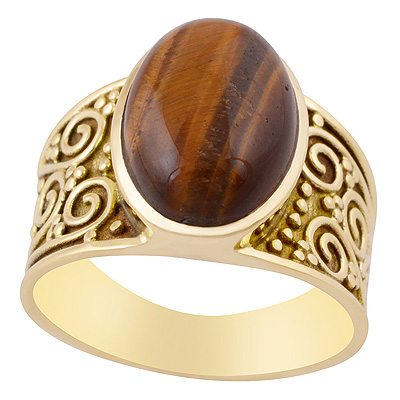 Alluring Rawa Spiral Design Around Tiger's Eye Oval Shape Solid Brass Men's Ring
