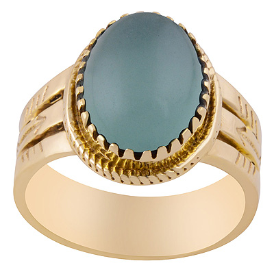 Beautiful Twisted Wire Around Blue Chalcedony Oval Shape Solid Brass Men's Ring