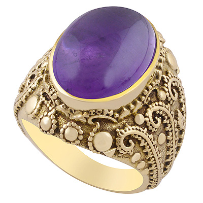 Home | Fashion Rings | Brass Men's Rings | Stunning Handcrafted Work Around Amethyst Oval Shape Solid Brass Men's Ring