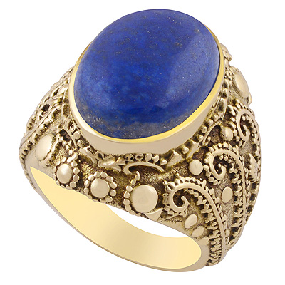 Home | Fashion Rings | Brass Men's Rings | Stunning Handcrafted Work Around Lapis Oval Shape Solid Brass Men's Ring