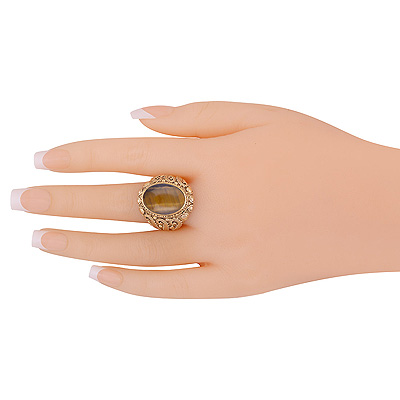 Home | Fashion Rings | Brass Men's Rings | Stunning Handcrafted Work Around Tiger's Eye Oval Shape Solid Brass Men's Ring