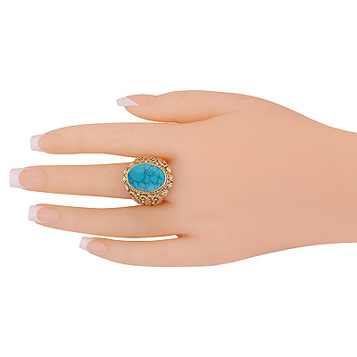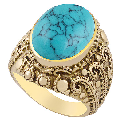 Home | Fashion Rings | Brass Men's Rings | Stunning Handcrafted Work Around Turquoise Oval Shape Solid Brass Men's Ring