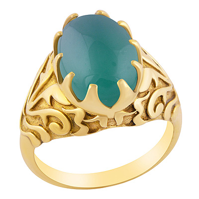 Alluring Handcrafted Shank Around Green Onyx Oval Shape Solid Brass Ring