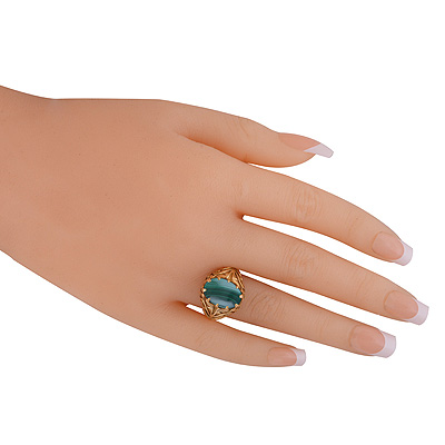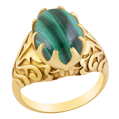 Alluring Handcrafted Shank Around Malachite Oval Shape Solid Brass Ring