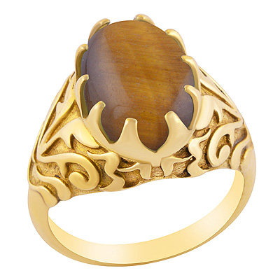 Alluring Handcrafted Shank Around Tiger's Eye Oval Shape Solid Brass Ring