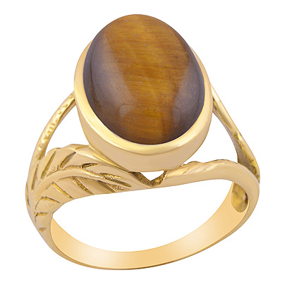 Home | Fashion Rings | Brass Men's Rings | Gorgeous Leaf Shank Around Tiger's Eye Oval Shape Solid Brass Ring