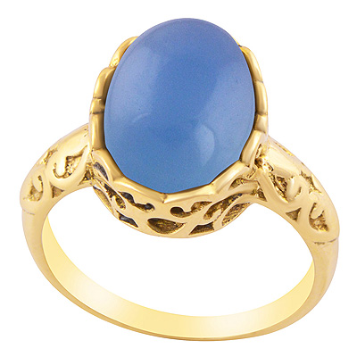 Home | Fashion Rings | Brass Men's Rings | Stunning Shank Design Around Blue Chalcedony Oval Shape Solid Brass Ring