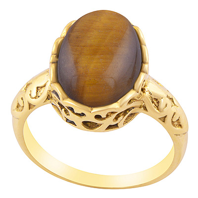 Home | Fashion Rings | Brass Men's Rings | Stunning Shank Design Around Tiger's Eye Oval Shape Solid Brass Ring