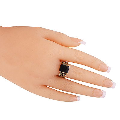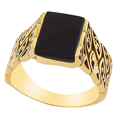Stunning Handcrafted Work Around Black Onyx Rectangle Shape Solid Brass Ring