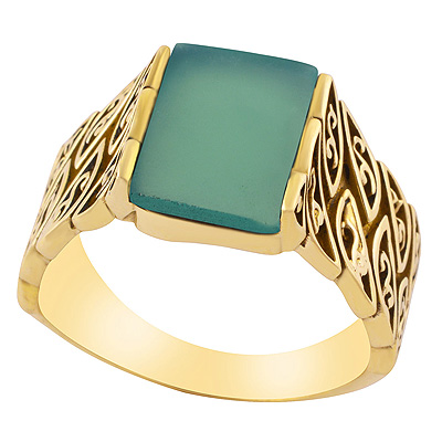 Stunning Handcrafted Work Around Green Onyx Rectangle Shape Solid Brass Ring
