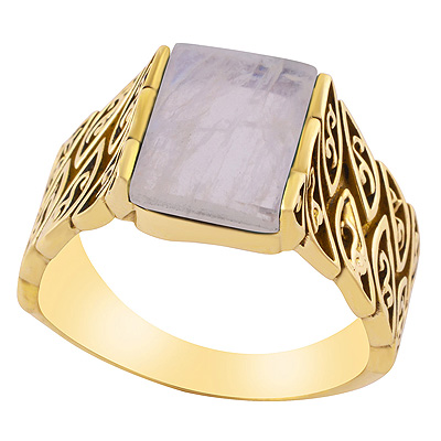Stunning Handcrafted Work Around Blue Chalcedony Rectangle Shape Solid Brass Ring