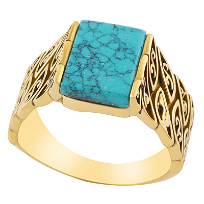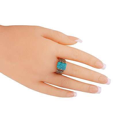 Stunning Handcrafted Work Around Turquoise Rectangle Shape Solid Brass Ring