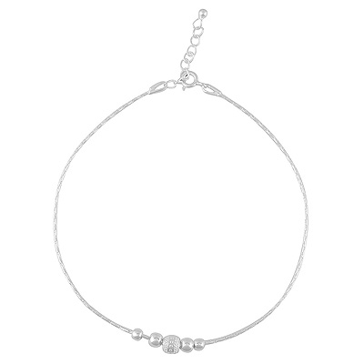 Stunning Beads Around Plain 925 Sterling Solid Silver Anklet
