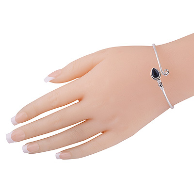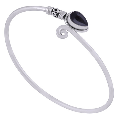 Home | Silver Bangles | Cabochon Bangles | Stunning Wire Work Around Black Onyx Pear Shape 925 Sterling Solid Silver Bangles