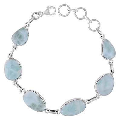 Stunning Seven Stone Larimar Irregular Shape 925 Sterling Solid Silver Bracelet