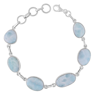Stunning Seven Stone Larimar Irregular Shape 925 Sterling Solid Silver Bracelet