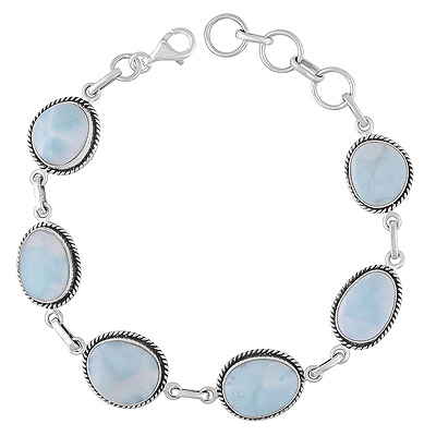 Authentic Wire Work Around Six Stone Larimar Irregular Shape 925 Sterling Solid Silver Bracelet