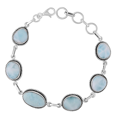 Authentic Wire Work Around Six Stone Larimar Irregular Shape 925 Sterling Solid Silver Bracelet