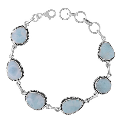 Authentic Wire Work Around Six Stone Larimar Irregular Shape 925 Sterling Solid Silver Bracelet