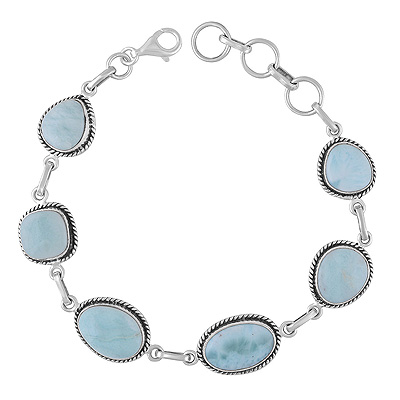 Authentic Wire Work Around Six Stone Larimar Irregular Shape 925 Sterling Solid Silver Bracelet