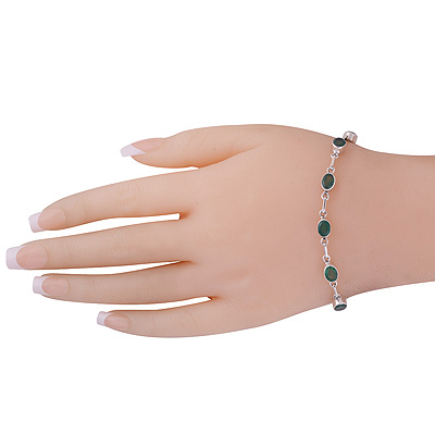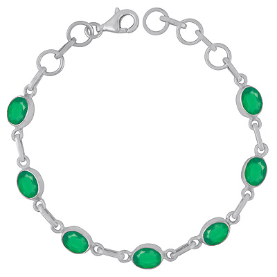 Stunning Multiple Gemstone Seated Around Green Onyx Oval Shape 925 Sterling Solid Silver Bracelet
