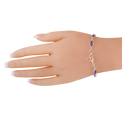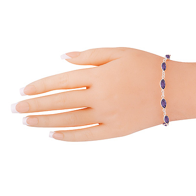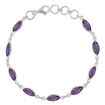 Home | Silver Bracelets | Cut Stone Bracelets | Nine Gemstone Amethyst Marquise Shape 925 Sterling Solid Silver Bracelet
