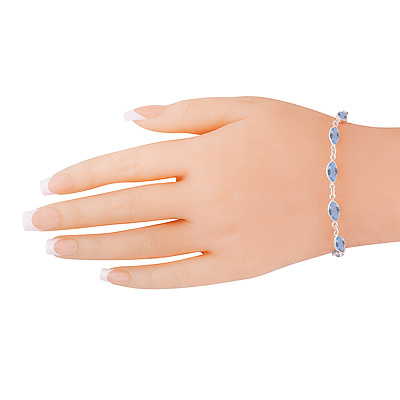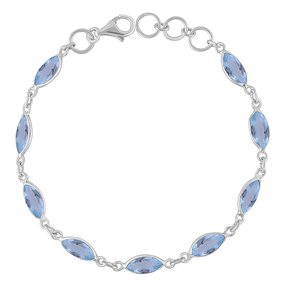 Home | Silver Bracelets | Cut Stone Bracelets | Nine Gemstone Blue Topaz Marquise Shape 925 Sterling Solid Silver Bracelet