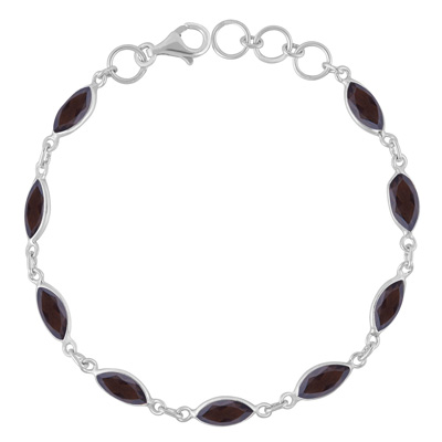 Home | Silver Bracelets | Cut Stone Bracelets | Nine Gemstone Smoky Topaz Marquise Shape 925 Sterling Solid Silver Bracelet