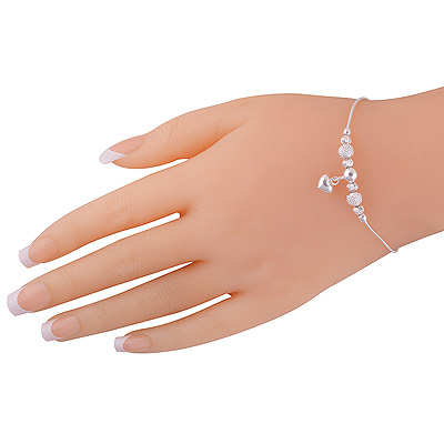 Home | Silver Bracelets | Plain Bracelets | Stunning Heart Charm Hanging Plain 925 Sterling Solid Silver Bracelet