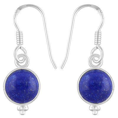 Home | Silver Earrings | Cabochon Earrings | Gorgeous Rawa Work at Bottom Bezel Lapis Round Shape 925 Sterling Solid Silver Dangle Earrings