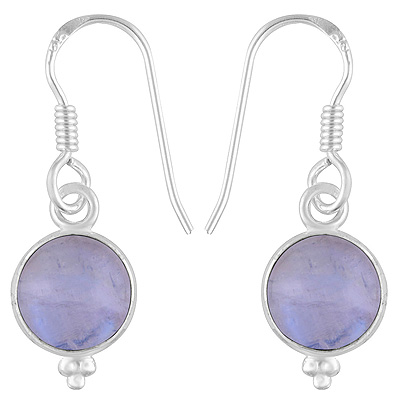 Home | Silver Earrings | Cabochon Earrings | Gorgeous Rawa Work at Bottom Bezel Rainbow Moonstone Round Shape 925 Sterling Solid Silver Dangle Earrings