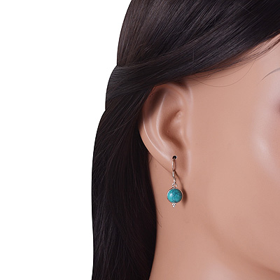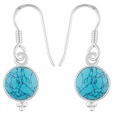 Home | Silver Earrings | Cabochon Earrings | Gorgeous Rawa Work at Bottom Bezel Turquoise Round Shape 925 Sterling Solid Silver Dangle Earrings