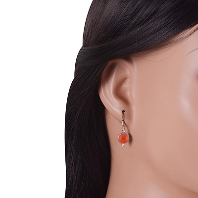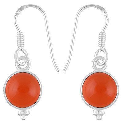 Home | Silver Earrings | Cabochon Earrings | Gorgeous Rawa Work at Bottom Bezel Carnelian Round Shape 925 Sterling Solid Silver Dangle Earrings