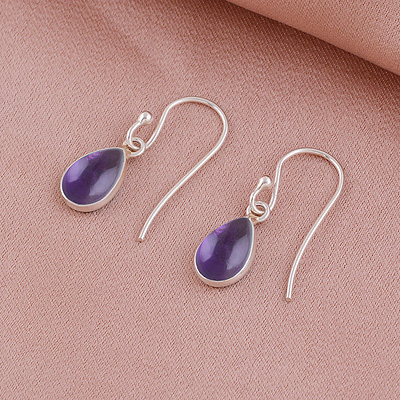Home | Silver Earrings | Cabochon Earrings | Beautiful Handmade Bezel Amethyst Pear Shape 925 Sterling Solid Silver Dangle Earrings