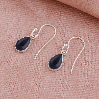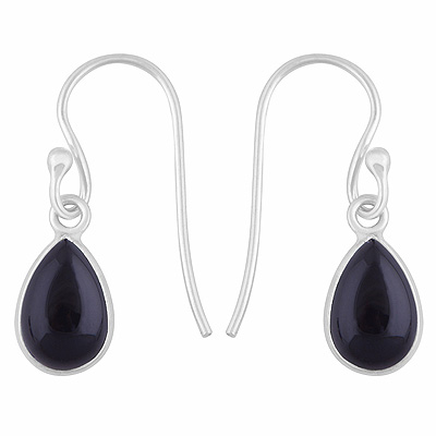 Home | Silver Earrings | Cabochon Earrings | Beautiful Handmade Bezel Black Onyx Pear Shape 925 Sterling Solid Silver Dangle Earrings