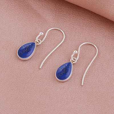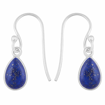 Home | Silver Earrings | Cabochon Earrings | Beautiful Handmade Bezel Lapis Pear Shape 925 Sterling Solid Silver Dangle Earrings