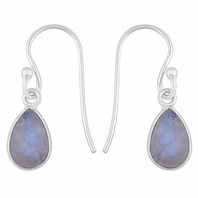 Home | Silver Earrings | Cabochon Earrings | Beautiful Handmade Bezel Rainbow Moonstone Pear Shape 925 Sterling Solid Silver Dangle Earrings