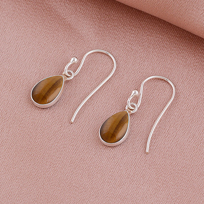 Home | Silver Earrings | Cabochon Earrings | Beautiful Handmade Bezel Tiger's Eye Pear Shape 925 Sterling Solid Silver Dangle Earrings
