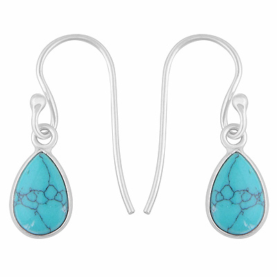Home | Silver Earrings | Cabochon Earrings | Beautiful Handmade Bezel Turquoise Pear Shape 925 Sterling Solid Silver Dangle Earrings