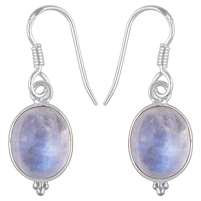 Home | Silver Earrings | Cabochon Earrings | Gorgeous With Rawa Bezel Rainbow Moonstone Oval Shape 925 Sterling Solid Silver Dangle Earrings