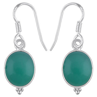 Home | Silver Earrings | Cabochon Earrings | Gorgeous With Rawa Bezel Green Onyx Oval Shape 925 Sterling Solid Silver Dangle Earrings