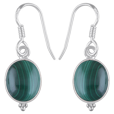 Home | Silver Earrings | Cabochon Earrings | Gorgeous With Rawa Bezel Malachite Oval Shape 925 Sterling Solid Silver Dangle Earrings