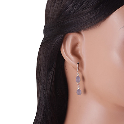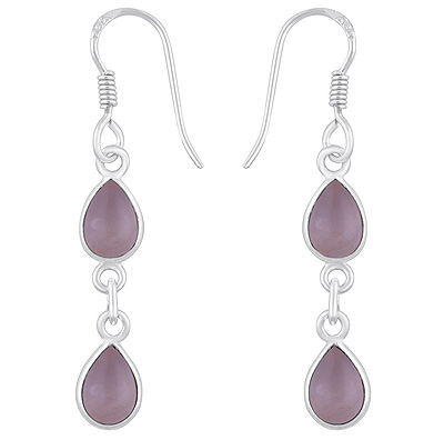 Home | Silver Earrings | Cabochon Earrings | Beautiful Two Stone Bezel Rose Quartz Pear Shape 925 Sterling Solid Silver Dangle Earrings