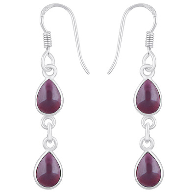 Home | Silver Earrings | Cabochon Earrings | Beautiful Two Stone Bezel Garnet Pear Shape 925 Sterling Solid Silver Dangle Earrings